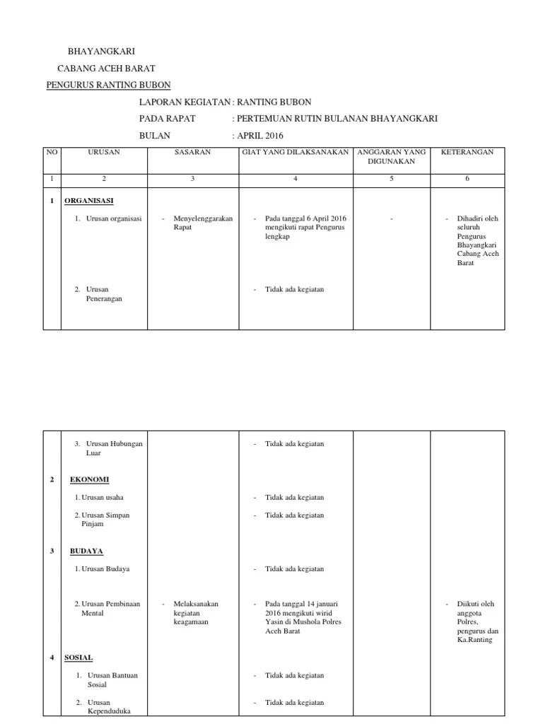 Contoh Laporan Bulanan Bhayangkari Ranting / Rsesurat Pengantar / Dedy tabrani selaku ketua bhayangkari ranting polsek tambora mengumpulkan.. Selalu menjaga keharmonisan dan keutuhan rumah tangga, agar bisa menjadi contoh dan tauladan bagi masyarakat di lingkungan tempat tinggalkannya . Program kerja pengurus pusat bhayangkari. Pertemuan pengurus dan ketua ranting secabang aceh tamiang Laporan bulanan pengadilan negeri bajawa. Dedy tabrani selaku ketua bhayangkari ranting polsek tambora mengumpulkan.